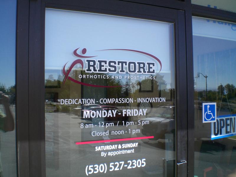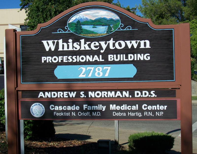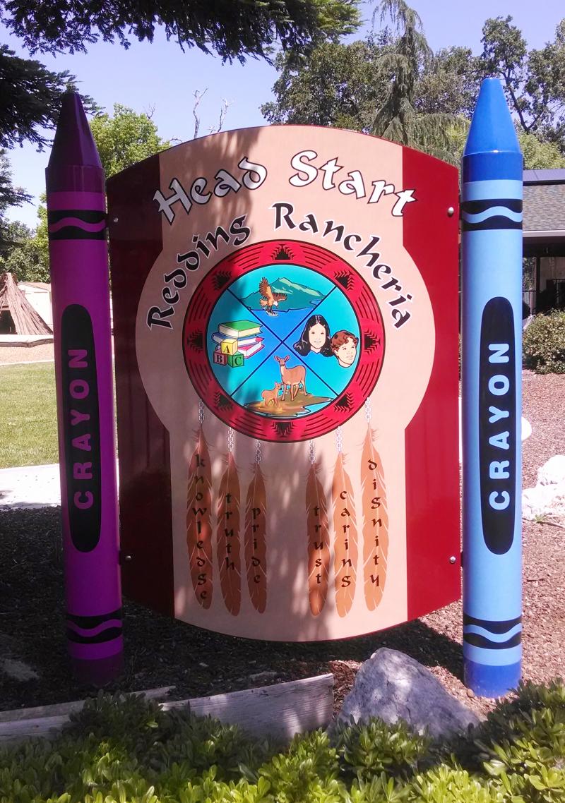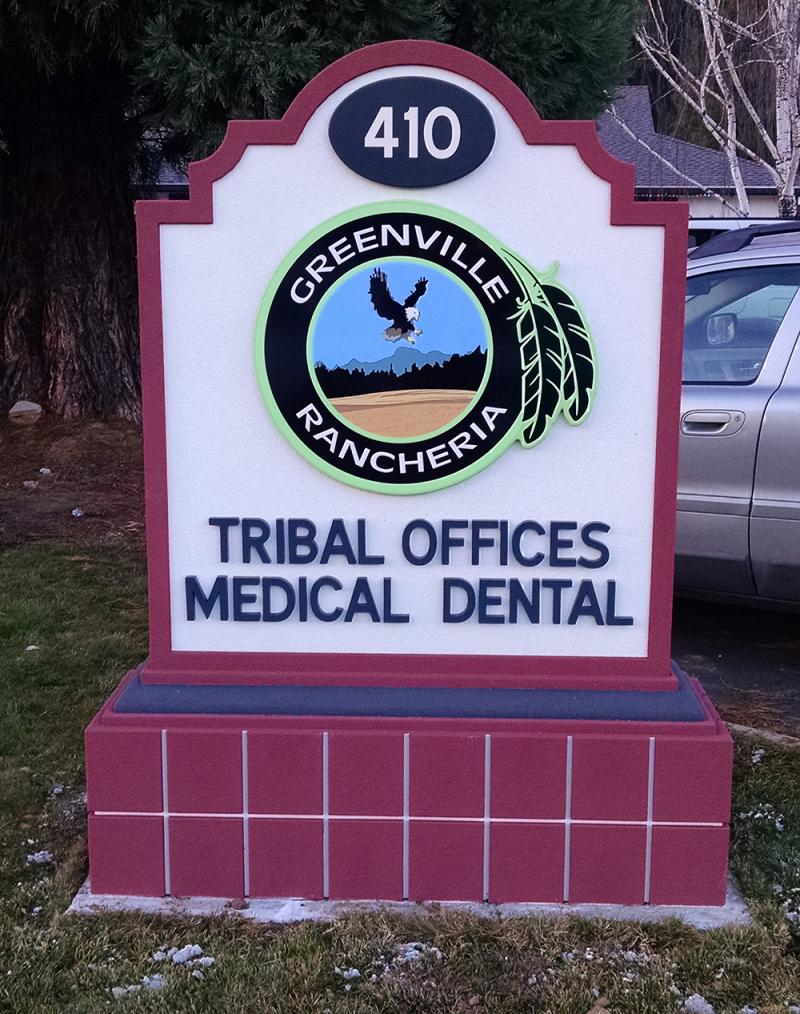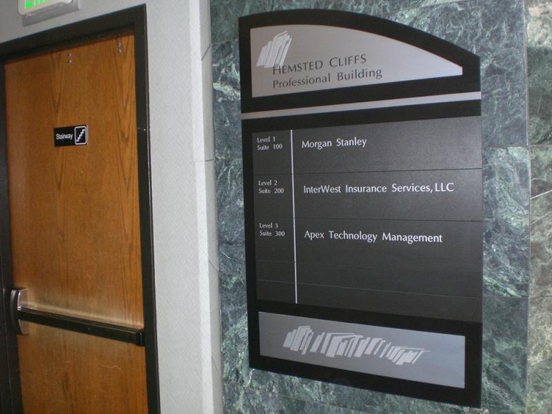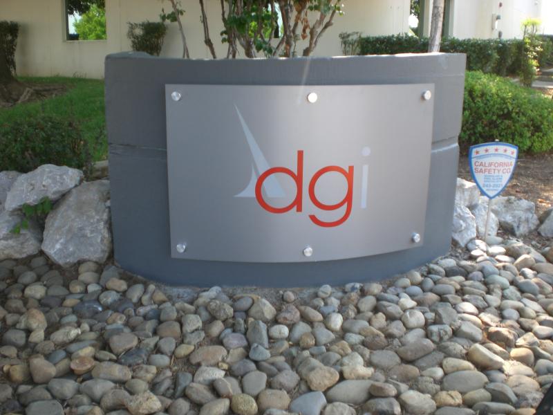 Metal panel with combination of paint and vinyl films. Standoffs were used to attach to rock monument