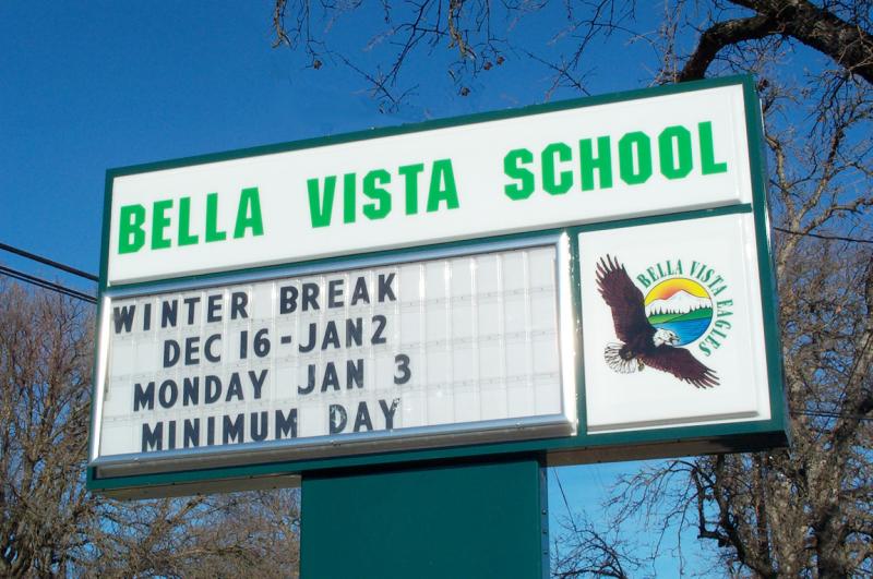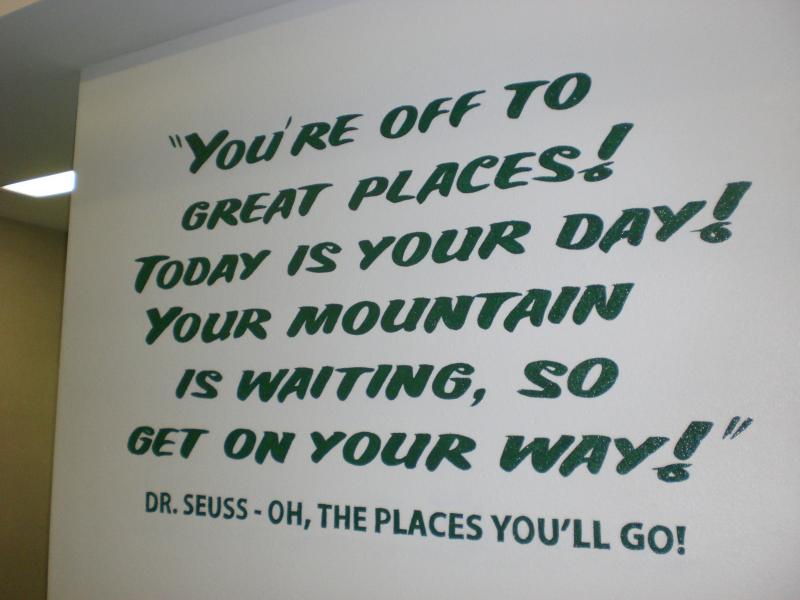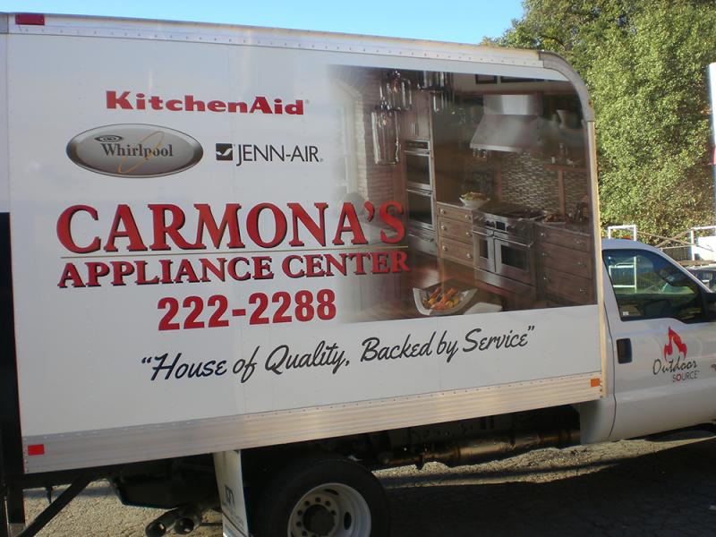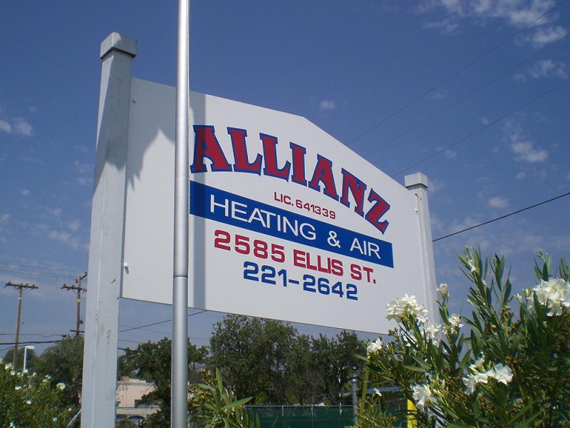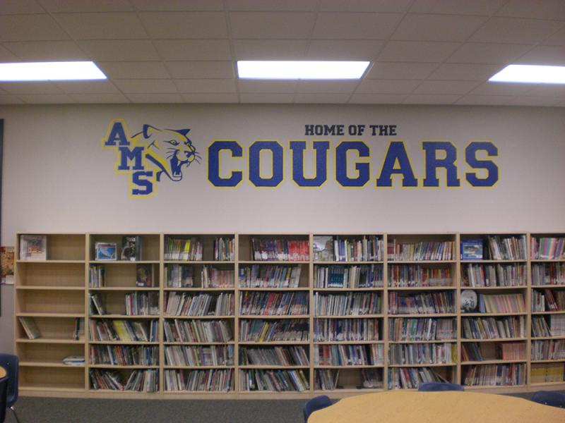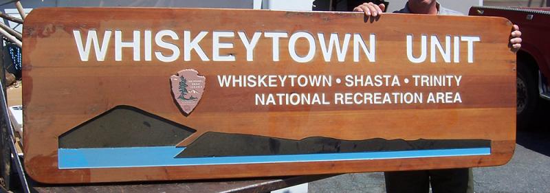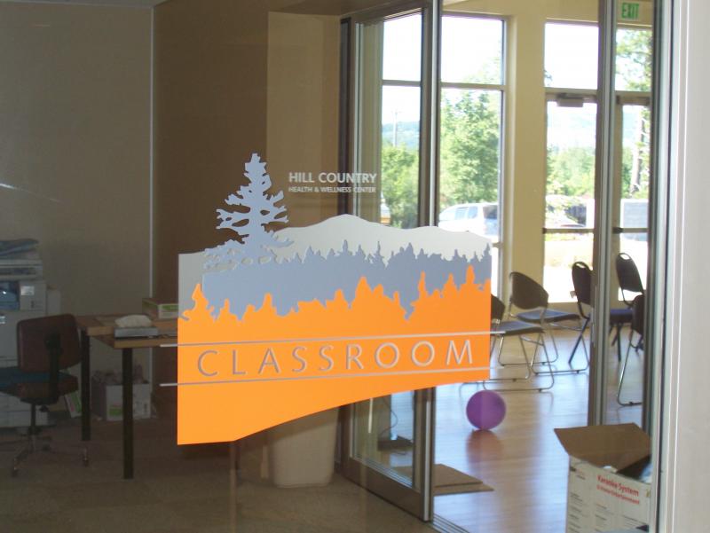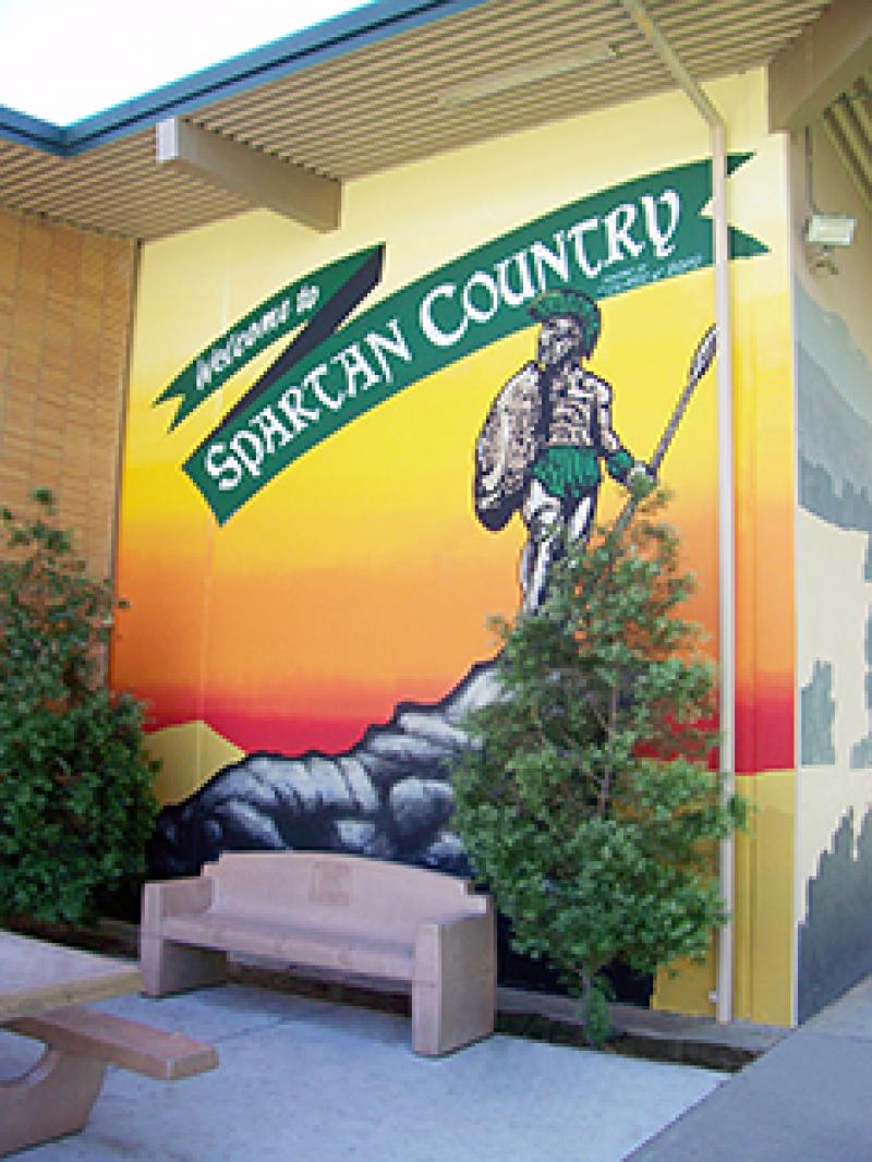 Metal panel with combination of paint and vinyl films. Standoffs were used to attach to rock monument