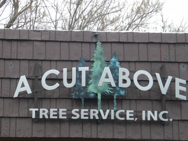 Bronze trees were finished with green patinas and other text is flat cut out aluminum Gemini Brand lettering. Raceway was used to attach to building.