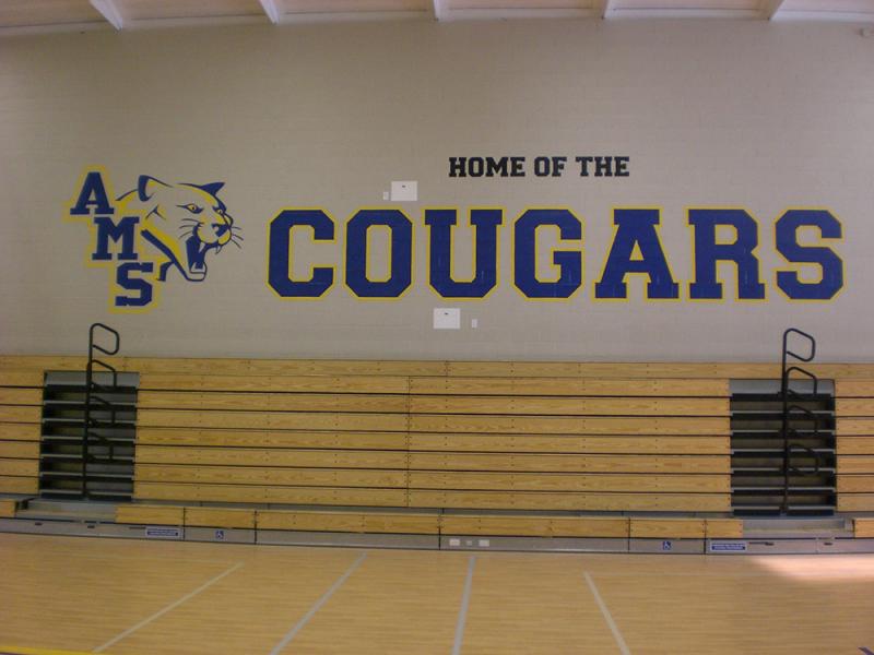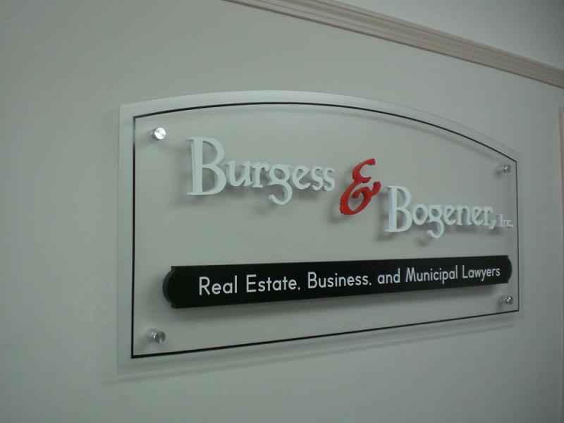 Interior sign with acrylic panel and added Gemini brand dimensional letters and aluminum standoffs to attach to drywall.